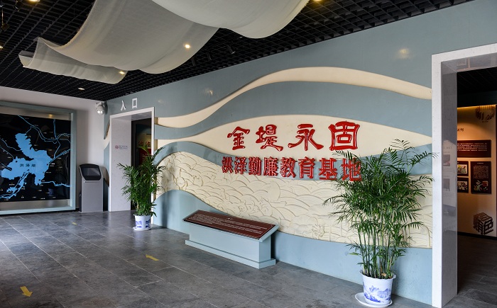 基地以"水能载舟,亦能覆舟"为主线,以"蚁穴溃堤"为警示,充分挖掘了林则徐、潘季驯、靳辅、郭大昌等一批治水先贤的勤廉故事,借古鉴今,借物喻人,以固若金汤的洪泽湖自然大堤引申寓意,教育广大党员干部要不断夯实廉洁从政的思想道德基础,筑牢思想上的防腐大堤。2017年被市委党校确定为"全市党员干部党性教育基地",中央党校、中直机关党校领导先后五次带队参观学习,内蒙古自治区纪委、省纪委、省委组织部、省公安厅、省商务厅等50多个机关单位来洪参观学习,累计参观人数超过20万人次。《中国纪检监察报》《新华日报》清风扬帆网等主流媒体先后推介10余次。
